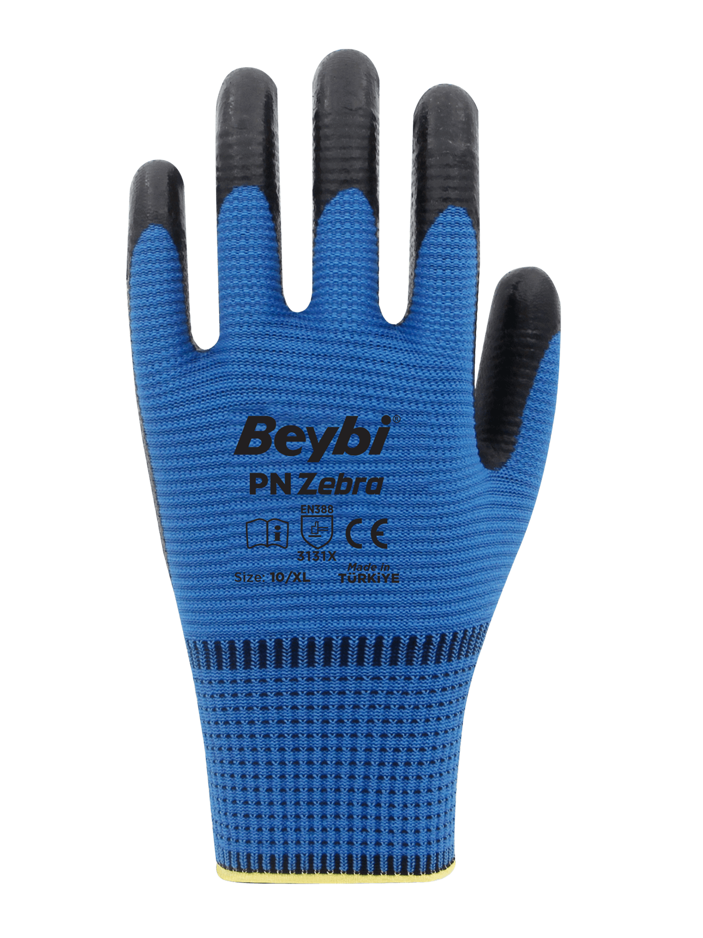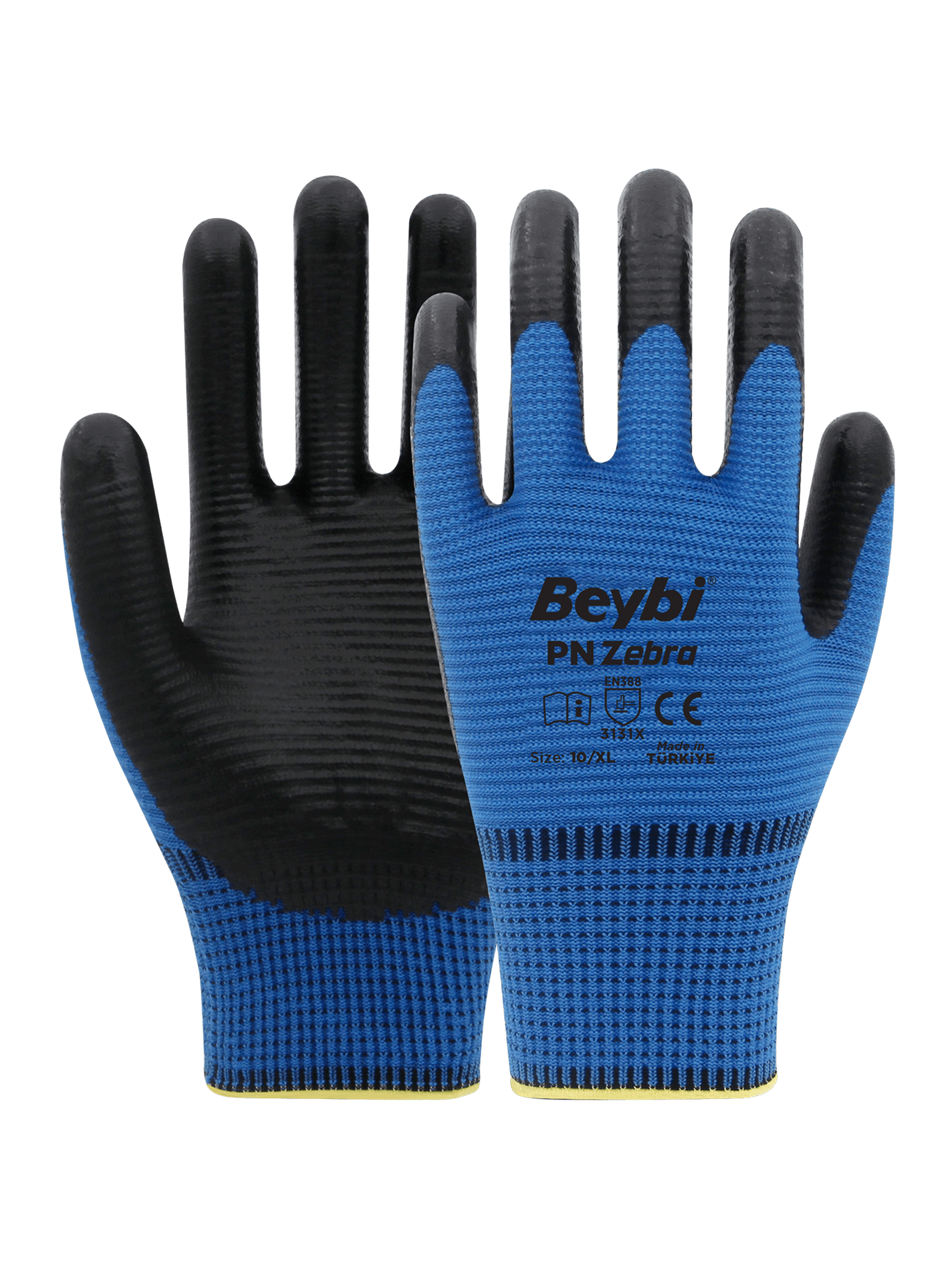 PN Zebra eldivenler ince ve hafif olması sayesinde üstün el becerisi ve konfor sağlar. Eldivenin kıvrımlı yapısı kavrama hissini ve kabiliyetini arttırır. Polyester örgü yapısı elinizin hava almasını sağlar, terletme yapmaz. Esnek konç yapısı bileğinize tam uyum sağlar. Aşınma ve yırtılmaya karşı uzun süre dayanıklıdır. REACH uyumludur. Gıda ile temasa uygundur.