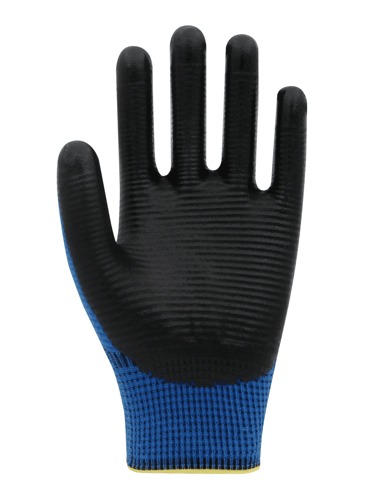 Tanım; Polyester iplikten örülmüş ve nitril ile yarı kaplanmış, iş eldiveni.
